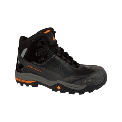 Botas gamma TREK WORK. Caña : Piel flor. Forro : Poliamida Cambrelle absorbente. Plantilla interior : Amovible - Poliéster sobre PU con forma adaptada al pie. Suela intermedia : Sellada - PU con amortiguador Panoshock®. Suela de uso : Goma Nitrilo. Calzado no magnético. Materiales: Caña : piel todo flor. Forro : poliamida Plantilla interior : Amovible : poliéster sobre PU. Suela de uso : PU / Goma . Puntera y suela antiperforación de composite (no magnètico).